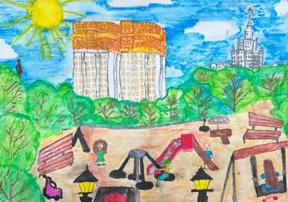 Меня зовут Полина. Мы любим гулять всей семьей: с родителями и моими младшими братом Пашей и сестрой Зоей, в Нескучном саду. Там много детских площадок, белочек и цветов. Рядом с парком — памятник Юрию Гагарину, а также здание Академии наук с солнечными часами. Вдалеке видно МГУ на Воробьевых горах. У нас красивый район. Здесь много институтов, памятников и зелени. Я люблю свой город Москву и горжусь нашим Гагаринским районом.