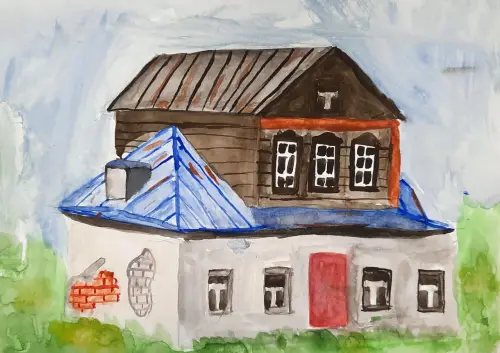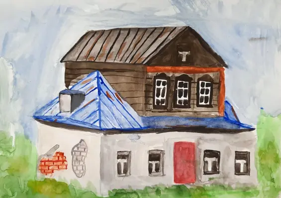 На рисунке изображено старинное здание, которое сохранилось до наших дней. Оно является историческим памятником, хранящим в себе историю прошедших эпох.