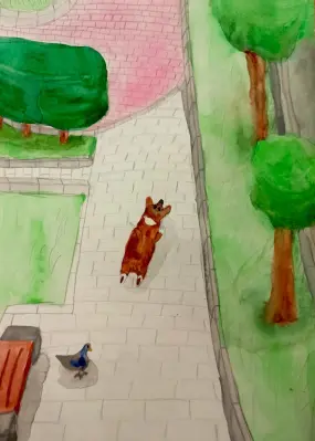 Всем привет! Меня зовут София и я нарисовала прогулку со своим домашнем питомцем Фредди. Каждый вечер, когда я прихожу со школы, мы с ним гуляем во дворе.Всем привет! Меня зовут София и я нарисовала прогулку со своим домашнем питомцем Фредди. Каждый вечер, когда я прихожу со школы, мы с ним гуляем во дворе.