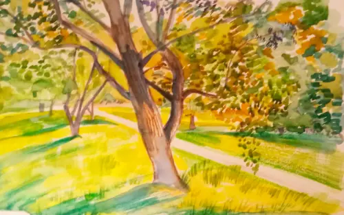 Я очень люблю гулять с родителями по паркам. Мы побывали во всех парках Москвы, но самый любимый и родной парк Люблино. Поэтому я его и нарисовала. Во время прогулки мне открываются все новые красивые места.