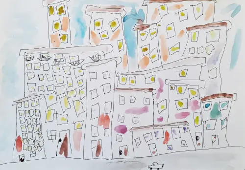 В детский сад папа возит меня на машине. Когда я еду, то смотрю в окошко на дома нашего города. Их много и они все разные. Я мечтаю стать архитектором и строить дома будущего.