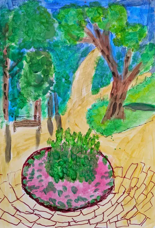 На данной картине изображён мой любимый парк, в котором я очень люблю гулять. На данной картине изображён мой любимый парк Лефортово, в котором я очень люблю гулять. В парке можно прогуляться в тени деревьев, поесть вкусные блины и поиграть на детской площадке.