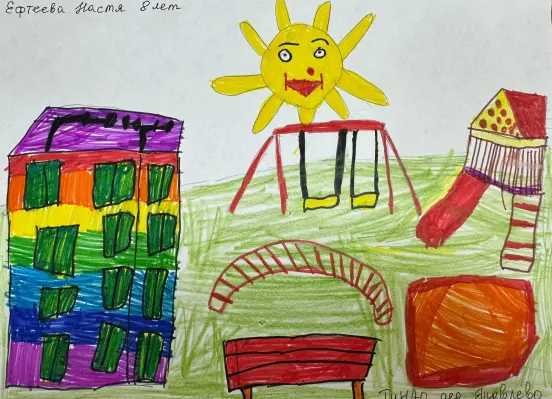 Я живу в деревне Яковлево, рядом с моим домом есть детская площадка, она очень красивая. Я очень люблю проводить время с друзьями на детской площадке!!!