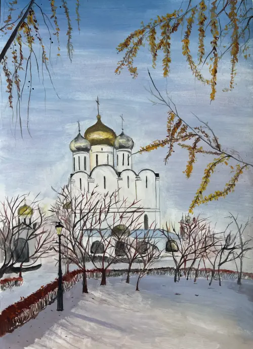 Мой рисунок воссоздает изящные формы белокаменного храма, величественно возвышающегося на фоне красоты природы ранней весной. Архитектурное великолепие сочетается с нежностью и пробуждением природы, создавая гармоничное и волшебное образ. Взглянув на эту картину, можно почувствовать умиротворение и восхищение перед величием мира и человеческого творчества.