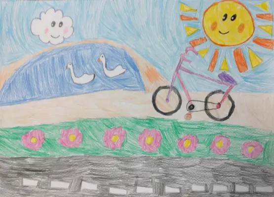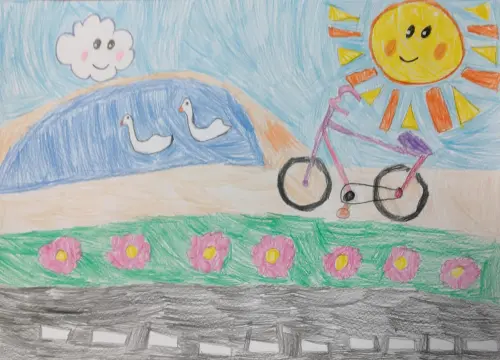 Люблю кататься на велосипеде в солнечную погоду. У нас в районе много велодорожек, хорошие велодорожки и в парке. Особенно хорошее настроение, когда светит солнце.