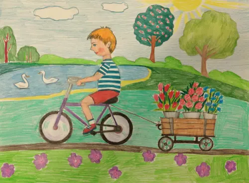 Катаясь по улицам любимого района, начинаешь фантазировать. Как я на велосипеде мчусь, а сзади целый прицеп с цветами. Люблю дарить цветы: маме, бабушке, сестре.