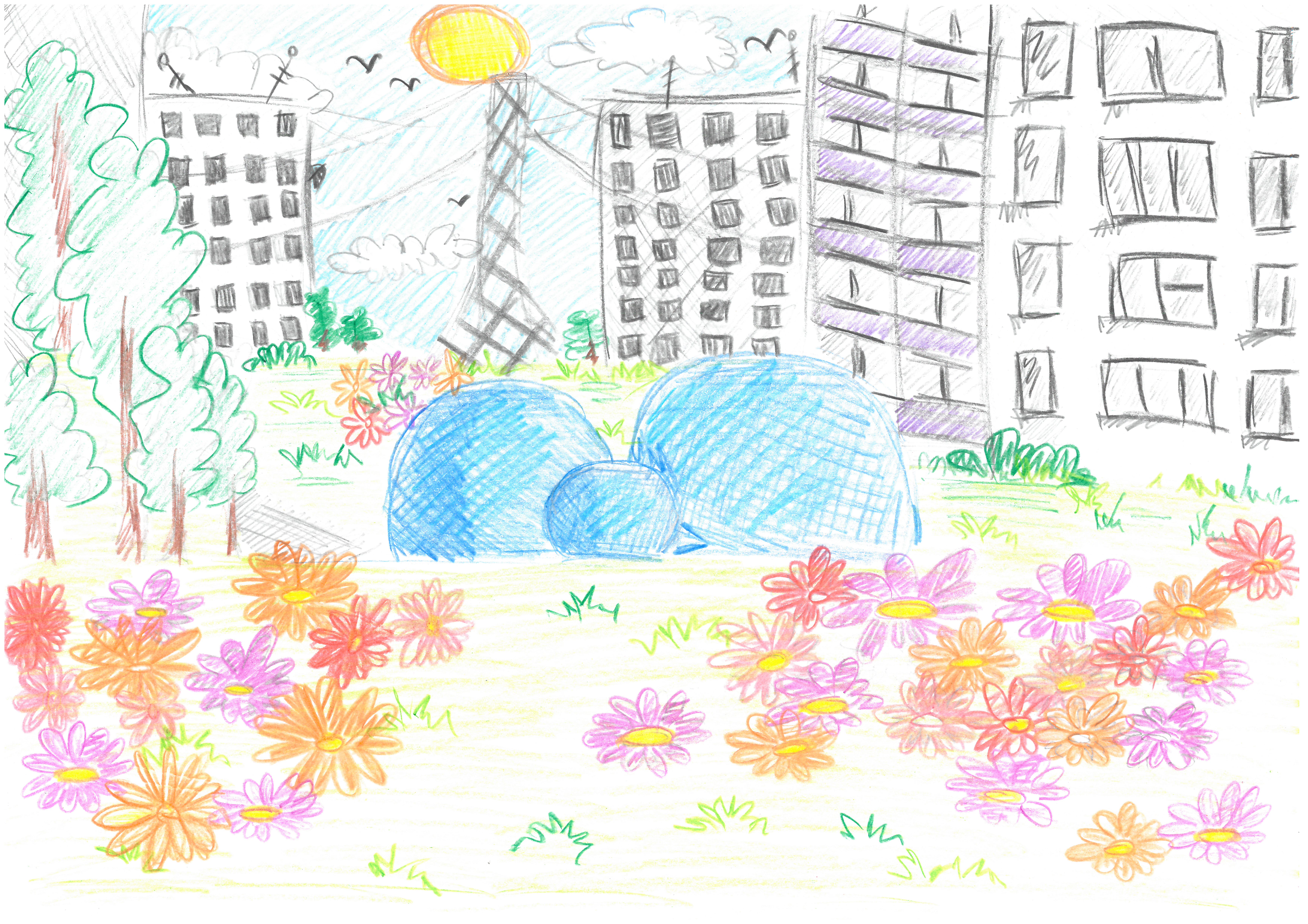 Я живу в Северном Бутово и очень люблю свой район. Мама называет голубые шары, которые у нас в районе на пешеходной зоне с качелями — яйцами дракона, именно поэтому я решил назвать свою работу так.