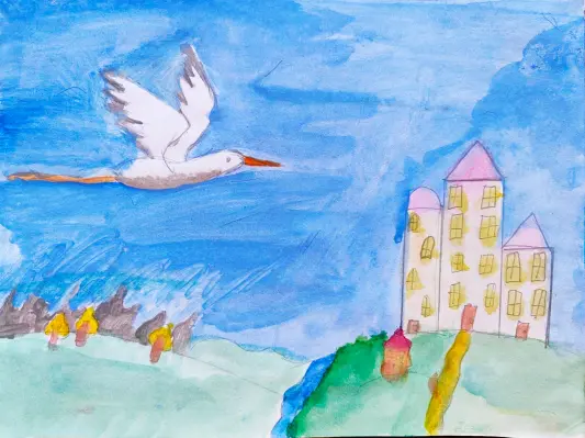 В мое дворе поселился аист. Очень люблю аистов, потому что они приносят счастье и любовь в дом! Надеюсь, что в нашей семье скоро появится братик или сестренка!