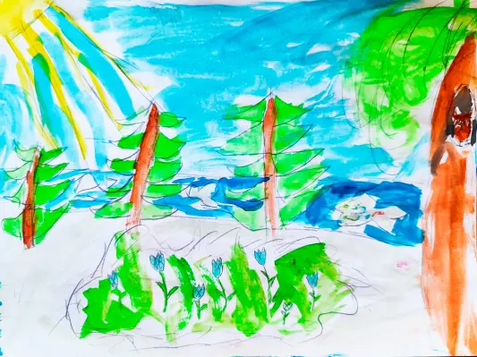 У моего дома есть очень красивая клумба с цветами. Весной как только начинает пригревать солнышко, бегут ручьи, появляются проталины, из-под снега появляются первые цветы -подснежники.