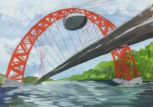 Живописный мост в последнее время стал символом СЗАО да и всей МОсквы. Такое необычное оформление моста, всех гостей столицы приводит в восторг. Нам тоже он очень нравится, поэтому многие его рисуют.