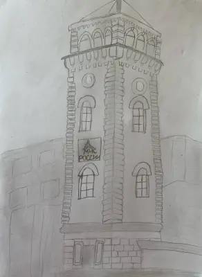 Работа выполнена карандашом. Я нарисовал пожарную каланчу на Петровско-Разумовском проезде. Это славное историческое место в городе Москве. Нам с семьей нравится гулять вдоль этой каланчи. Здесь всегда пожарная техника и пожарные.