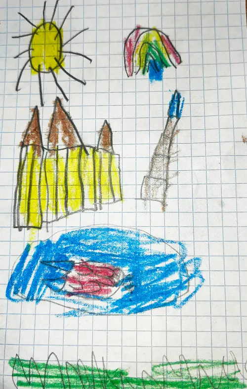 Меня зовут Вероника, мне 6 лет, я живу в Рогово и очень люблю свой посёлок. Здесь красиво в любую погоду, но особенно когда светит солнце. Я нарисовала наш храм, который видно из окна моей комнаты, он очень красивый и похож на замок. Меня зовут Вероника, мне 6 лет, я живу в Рогово и очень люблю свой посёлок. Здесь красиво в любую погоду, но особенно когда светит солнце. Я нарисовала наш храм, который видно из окна моей комнаты, он очень красивый и похож на замок.