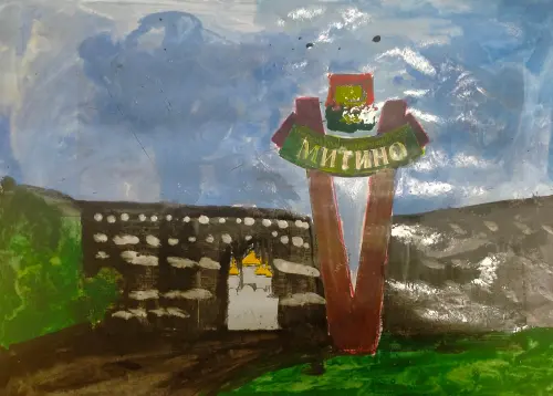 На моей работе изображена визитная карточка района Митино — храм при въезде и герб. Я люблю свой район. Я здесь родился и люблю проводить здесь время с семьёй.