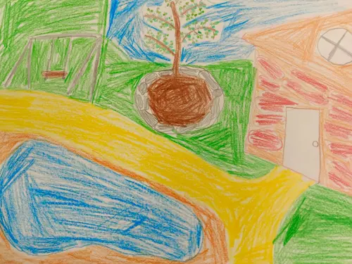 Около дома у нас растет большое дерево, оно уже старое. Мы его обложили камешками по кругу около корней. И поливаем, когда жарко. Весной оно распускается и становится очень красивым.Около дома у нас растет большое дерево, оно уже старое. Мы его обложили камешками по кругу около корней. И поливаем, когда жарко. Весной оно распускается и становится очень красивым.