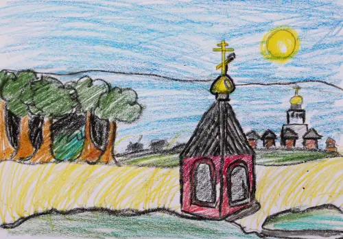 Работа выполнена в технике восковые мелки, в рамках интерактивной летней программы "Лето на планете "Гермес", под руководством педагога по рисованию Лыковой Н.В.