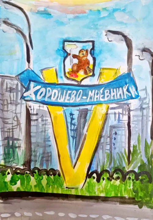 Герб нашего района Хорошево — Мневники представляет себя — бобра — строителя с мастерком и каской. Герб был придуман при строительстве нашего района в конце 50-х годах.