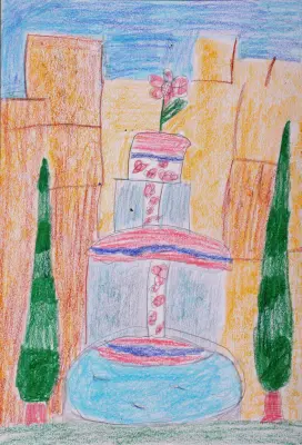 Работа выполнена в технике восковые мелки, в рамках интерактивной летней программы «Лето на планете «Гермес», под руководством педагога по рисованию Лыковой Н.В.