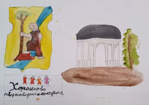 На своем рисунке я изобразил знаковые места нашего района Хорошево — Мневники: Дворец творчества детей и молодежи «Хорошево», ротонда на бульваре Карбышева и герб.