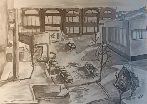 Вид из окна Художественной школы в городе Троицк, на Октябрьский проспект.