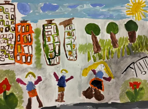 Я очень люблю гулять с друзьями у нас во дворе, наш двор чистый и красивый, много цветов и зелени. Дома Летнего сада яркие и красивые, как лето, здесь всегда смех и радость!
