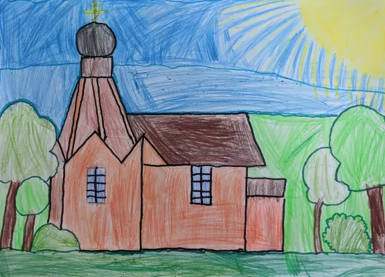 Саша растет в православной семье, часто бывает в храме. Именно поэтому она решила изобразить на рисунке один из храмов родного района. Свое существование храм-часовня начал в 1997 году, когда была заложена небольшая деревянная часовня шатрового типа, увенчанная луковичной главкой. Как и многие часовни, она была устроена на пересечении дорог, чтобы человек имел возможность зайти по пути, поставить свечу и помолиться. В 2005 году по благословению Святейшего Патриарха Московского и всея Руси Алексия часовня была преобразована в храм-часовню (малый храм) с возможностью совершения Божественной литургии. Приглашаем всех в наш гостеприимный район!