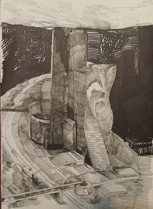 Работа выполнена чёрной ручкой и маркером на формате А3.