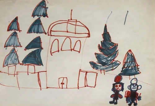 Мы гуляли с бабушкой в Александровском саду. Я рисовала кошек мелом. Потом мы пошли гулять на Красную площадь. Зашли в ГУМ и поели мороженого. Потом даже второй раз, потому что первое мороженое было невкусное. А когда вернулись домой, бабушка попросила нарисовать Кремль. Я дорисовала маму и папу, потому что хотела, чтобы они тоже там с нами гуляли.