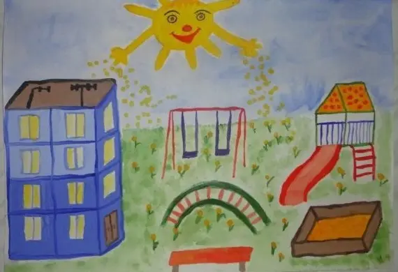 Мой двор уютный, с хорошей детской площадкой. Мы там придумываем много различных игр. На ней гуляют дети разного возраста, ведь есть и горка, и песочница, для самых маленьких.