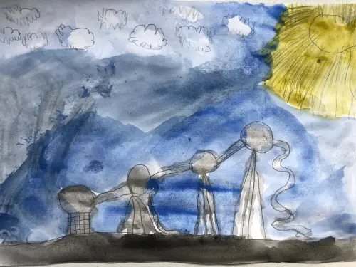 Недалеко от метро в нашем районе есть необычная детская площадка, она похожа на космическую станцию. Мне очень нравится там играть, кататься с самой высокой горки.