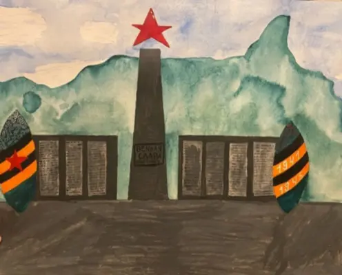Мы часто ездим в гости к бабушке в Строгино. Там есть обелиск погибшим строгинцам в годы Великой Отечественной войны. Каждое 9 мая там проходят патриотические мероприятия, митинги, а потом шествие до танка.
