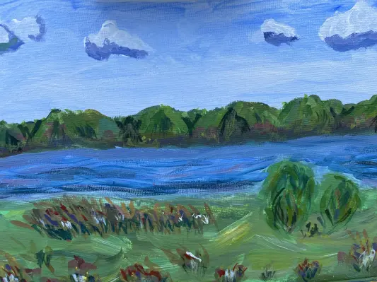 В моем районе есть что написать. Особенно летом и конечно же это пейзаж. Река, обрамлена кустарниками, все зелено-голубое и небо. Небо в облачную погоду.В моем районе есть что написать. Особенно летом и конечно же это пейзаж. Река, обрамлена кустарниками, все зелено-голубое и небо. Небо в облачную погоду.
