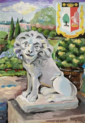 Я очень люблю бывать в Усадьбе Кусково, которая находится в моем районе Вешняки. Там, возле главного дома, есть два очень милых льва. Когда я была совсем маленькая, то назвала одного Фёдором. Мне кажется ему идет это имя. Он строгий, но очень добрый. Часто я беру с собой на прогулку бумагу и краски. Одним летним днем я нарисовала своего любимого льва.