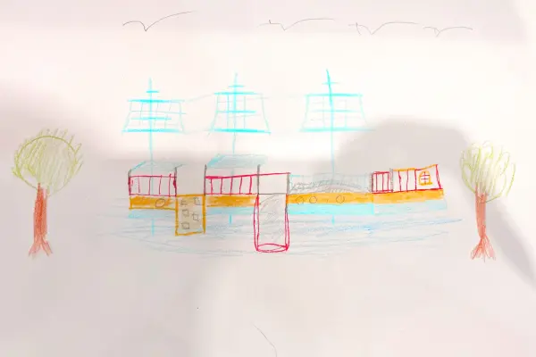 На моем рисунке изображена детская площадка корабль, находящиеся по адресу Грина 20, там мы часто с друзьями в детстве играли в стоп земля и догонялки и до сих пор там гуляем