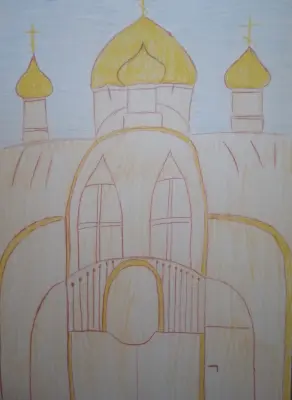 Я решила нарисовать храм, потому что он мне очень нравится. Мы ходим с мамой в этот храм на службы и на причастия. В этом храме служат очень добрые батюшки. Я люблю ходить в наш храм. Он высокий и очень красивый.