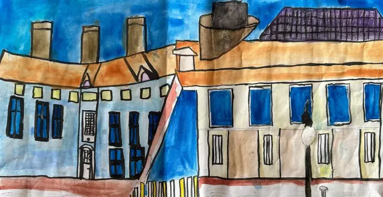 На моем рисунке «Улица Сретенка» изображены здания на одной из старинных московских улиц. Я постаралась передать атмосферу этой улицы с ее характерными домами и архитектурными деталями. В центре внимания – фасады домов с яркими окнами и крышами, создающие ощущение уюта и тепла. Техника выполнения: акварель и маркеры.