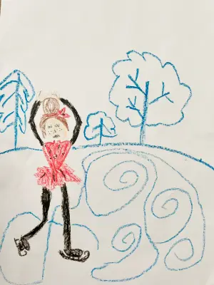 Я очень люблю зиму и очень тоскую по ней, потому что я люблю кататься на коньках. Мы с подружками почти каждый день катаемся на нашем катке, играем в догонялки и учим друг друга разным пируэтам.