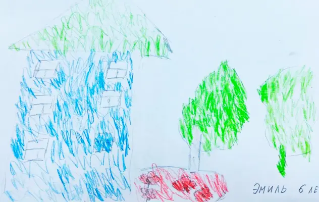Район Восточный находится в городе Москве. Он очень красивый и спокойный. На рисунке изображен дом, в котором я живу. Он многоэтажный, рядом с домом растут деревья и благоустроена клумба.