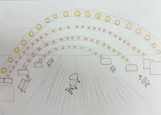 Рядом с центральной площадью парка у фонтана несколько лет назад открыли аллею, которая украшена фонариками. Она выглядит очень необычно и красиво, поэтому она стала тоже запоминающимся местом нашего парка.
