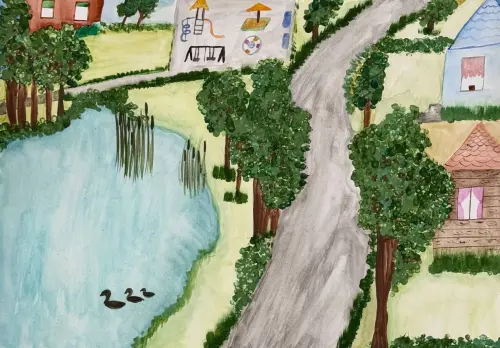 Мой дом находится в Новой Москве. Выходя во двор я вижу высокие зелёные деревья. Вдоль дороги красивый чистый пруд с карасями. По нему каждый год плавают утки с утятками. Рядом стоит современная детская площадка, на которой я люблю играть с друзьями. Я люблю свой город!