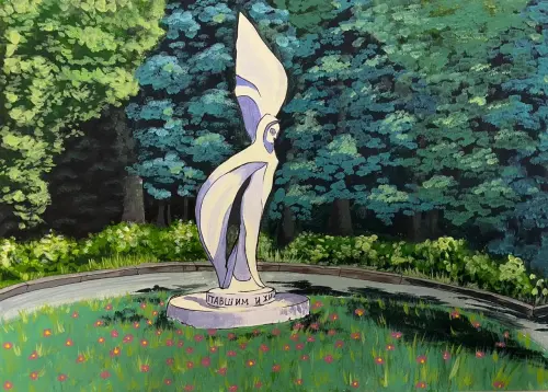 Я на своем рисунке нарисовала памятное место Войковского района — это монумент «Павшим и Живым», возведенный в честь ВОВ 1941-1945 гг.