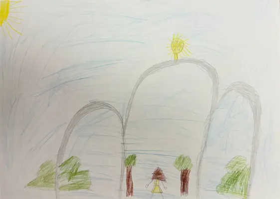 На рисунке центральный вход в наш парк Сокольники. Через него жители района и гости приходят в наш парк на прогулки и на разные праздники, которые проходят в парке.