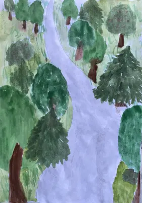 Полина нарисовала наш любимый зеленый Филевский парк.Филевский парк-это зеленый уголок нашего района.Детки очень любят ходить гулять там, а так же с удовольствием кормить орешками белочек.