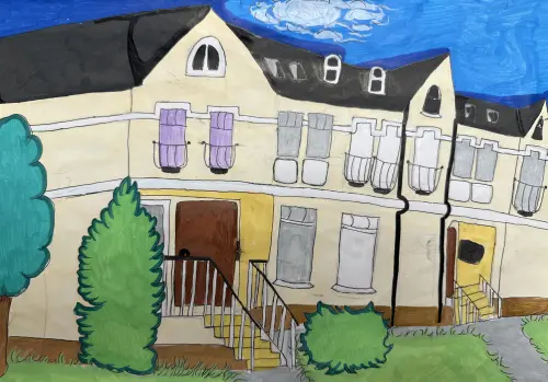 Я нарисовала свой дом, я очень люблю свой город, свой район! Здесь очень много кустарников и деревьев, так же жители нашего района самостоятельно разбивают клумбы около своих подъездов! Мы переехали в этом году, в следующем тоже будем сажать цветы вместе с мамой!