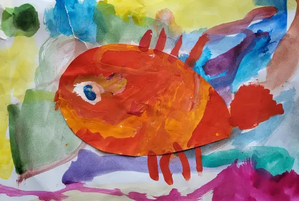 Рядом с нашим домом находится парк Дубки, в нем есть пруд, а там водятся рыбки. Я видел один дядя поймал вот такую рыбу, ее я и нарисовал! Она волшебная, золотая, исполнит все мои мечты! Хочу победить в конкурсе!