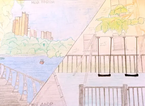 Своей работой я хотела отобразить самый комфортный, обустроенный и очень зелёный, а главное любимый район — Филёвский парк!