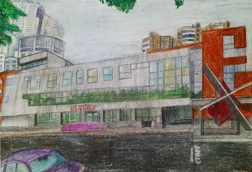 Я нарисовала Дом культуры «Берендей», в котором я занимаюсь танцами. Он находится в районе Хорошёво-Мнёвники, рядом с красивым живописным мостом. В этом доме культуры проходит огромное количество интересных мероприятий для жителей нашего района.