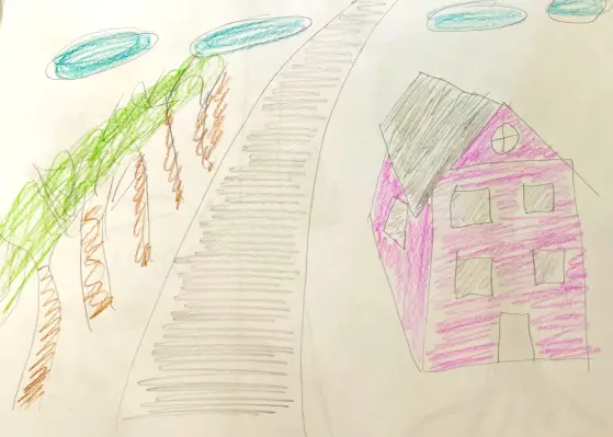Городской пейзаж, где смешиваются сразу две стихии: город и природа. На картине видно как плавно сочетаются эти две абсолютно противоположных стихии, но при этом они живут в мире и согласие.