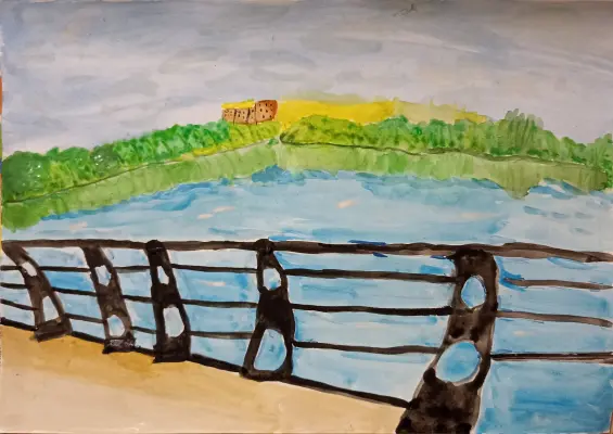 Мне очень нравится рисовать эту спокойную и умиротворяющую картину. Каждый раз, когда я прихожу сюда, я чувствую, как напряжение уходит, и на душе становится легко и радостно. Эта набережная — мое любимое место в нашем городе.