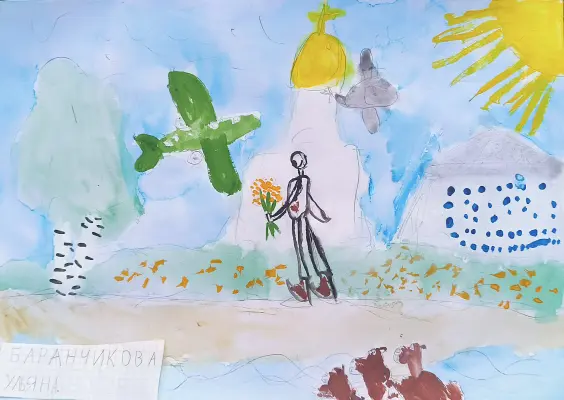 Я живу на месте, где раньше был Тушинский аэродром. Сто лет назад здесь был луг, через реку стояла деревня Строгино, а последний самолёт улетел с аэродрома всего десять лет назад. Сейчас здесь дома, а память об авиации осталась в названиях наших улиц. Я живу на Небесном бульваре. А совсем рядом течет Москва-река, где водятся бобры: сама, папа и бобренок. На берегу набережной стоит храм святого Владимира и выставочный центр. Я нарисовала вид на него с Москва-реки.Я живу на месте, где раньше был Тушинский аэродром. Сто лет назад здесь был луг, через реку стояла деревня Строгино, а последний самолёт улетел с аэродрома всего десять лет назад. Сейчас здесь дома, а память об авиации осталась в названиях наших улиц. Я живу на Небесном бульваре. А совсем рядом течет Москва-река, где водятся бобры: сама, папа и бобренок. На берегу набережной стоит храм святого Владимира и выставочный центр. Я нарисовала вид на него с Москва-реки.