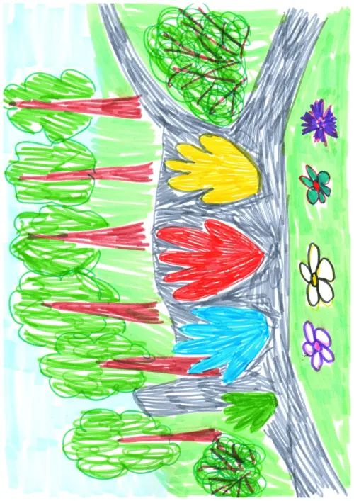 В парке 50-летия Октября, где я часто гуляю с родителями, на входе находятся яркие и красивые Ладошки. При их виде поднимается настроение. Я очень люблю приходить в этот парк.